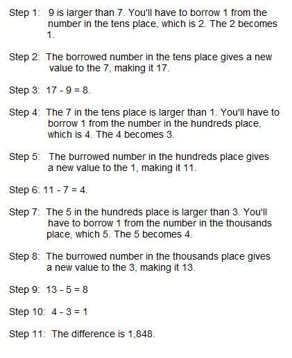 in the minuend, you will have to borrow from the preceding number in the